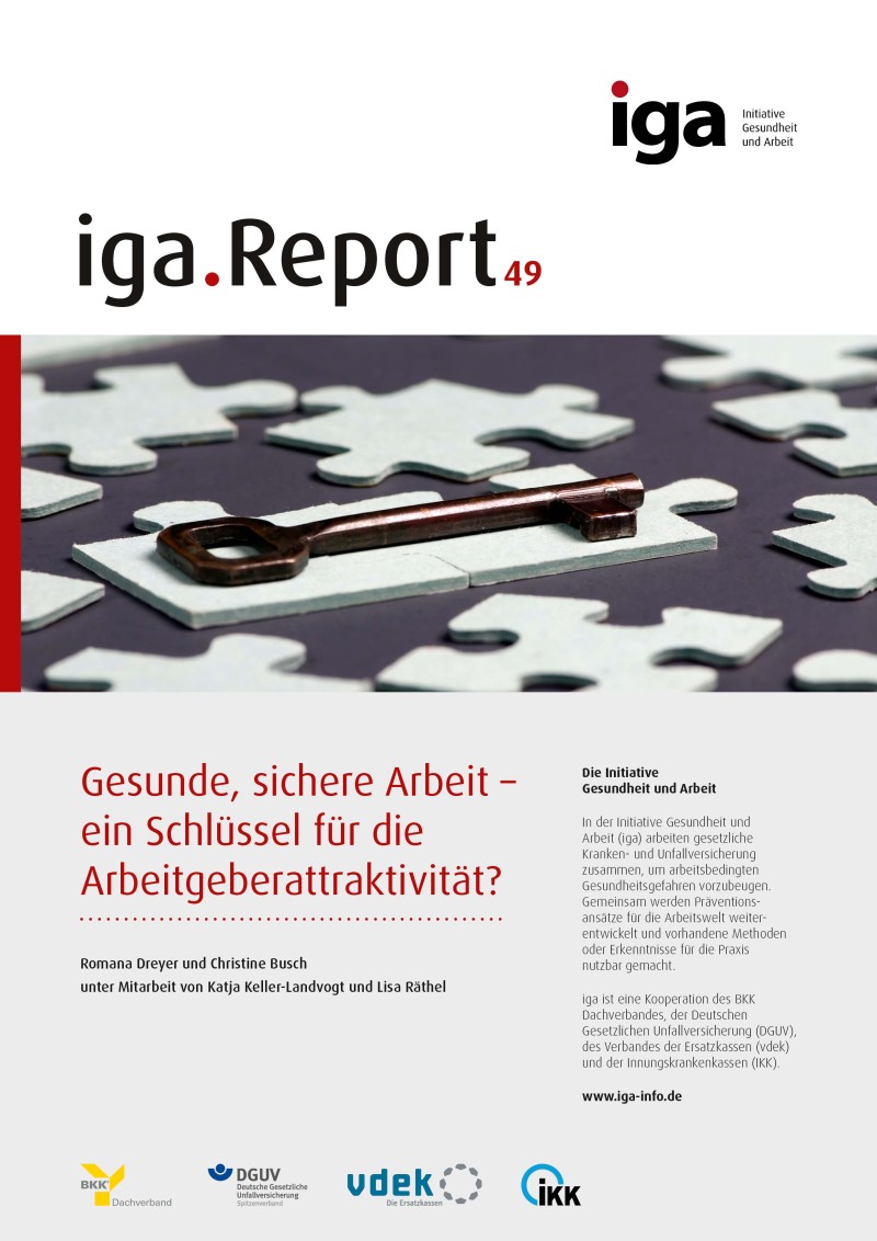 Was bindet Mitarbeitende an ein Unternehmen und was macht es für neue Fachkräfte attraktiv? Diese Fragen entscheiden zunehmend über den Erfolg von Unternehmen. Der neue iga.Report 49 "Gesunde, sichere Arbeit – ein Schlüssel für die Arbeitgeberattraktivität?"der Initiative Gesundheit und Arbeit (iga) untersucht den Zusammenhang zwischen Betrieblicher Gesundheitsförderung (BGF), Arbeitsschutz und Arbeitgeberattraktivität. Er beleuchtet diese Themen aus Sicht von Beschäftigten und Unternehmensverantwortlichen.