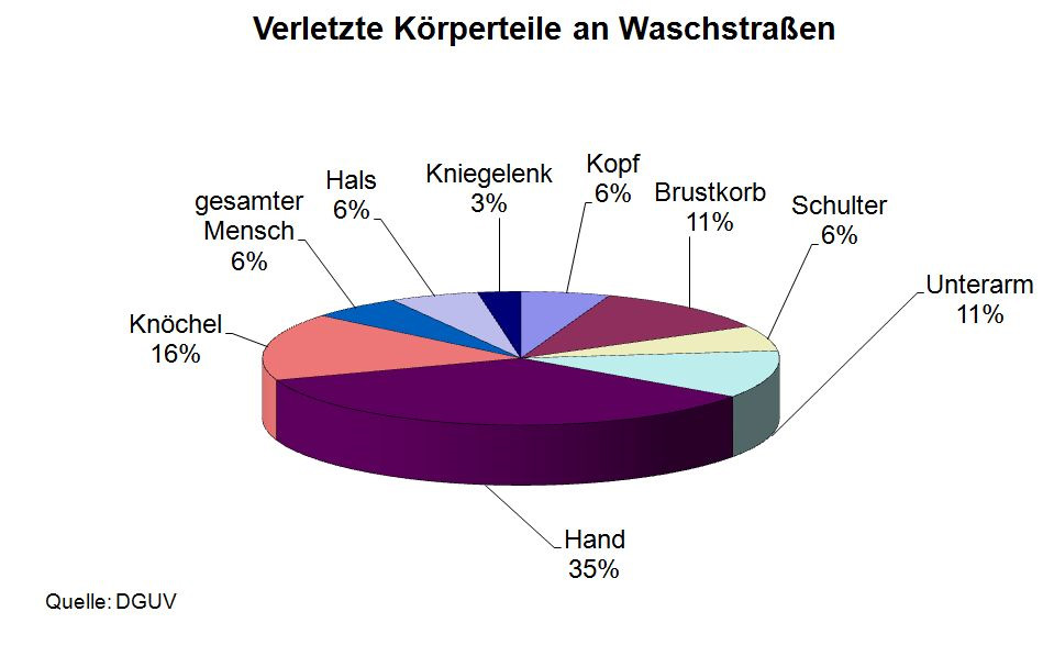 | Verletzte Körperteile bei Unfällen an Waschstraßen |