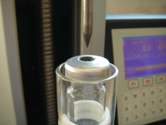 Prüfung der Durchstichfestigkeit an beaufschlagter Probe